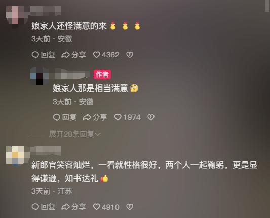 郭浑厚的视频激发网友温和,有网友暗示,“记顺当令初中时咱们语文浑厚娶妻,娶妻追思还给咱们发喜糖,看他娶妻的摄像带,于今齐时过境迁,再也回不去阿谁芳华年代了”,还有网友笑称,“娘家东谈主还怪自得的”,对此,郭浑厚暗示,“感谢环球对我和彭医师的好意思好祝贺,也曾给咱们班学生转达了环球的心爱,孩子们也让我转达对环球的感谢。”