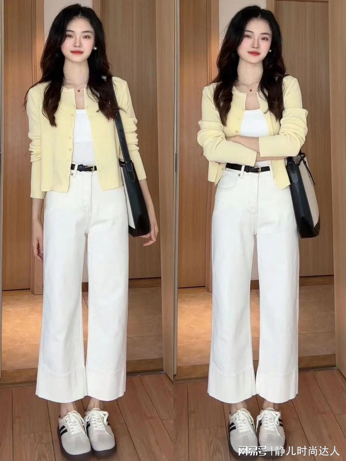 阔腿裤有好几种穿法,春日的阔腿裤穿搭不错参考女生的搭配哦,澄澈又知性,甜好意思中又带点飒爽,阔腿裤具有高腰商量,简略修饰腰线,同期也穿出优雅的气质。