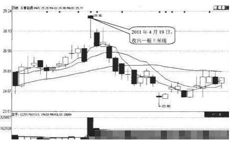 2011年4月19日,该股高开低走收出一根上吊线,这极有可能是转势信号,担当日成交量放大显着,很有可能是主力在出货,投资者看出这种情况,应立即卖出股票。